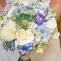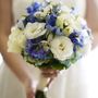 Невеста с прической из пышных локонов собранных небрежно с боку пышными белыми розами, с ярким макияжем в голубом и коричневом - фото 3033787 Флорист Ковалёнок Дарья