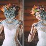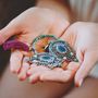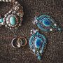 Комплект украшений для невесты. Массивные браслет и серьги в этническом стиле. Серебряные круглые бусины, кристаллы в форме капель, бирюза.