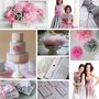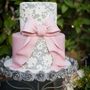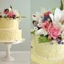 Шоколадный многослойный свадебный торт с белым кремом, рядом бисквитный тортик в кокосовой стружке.