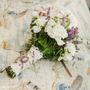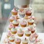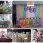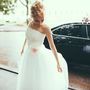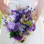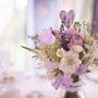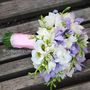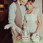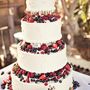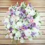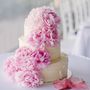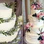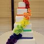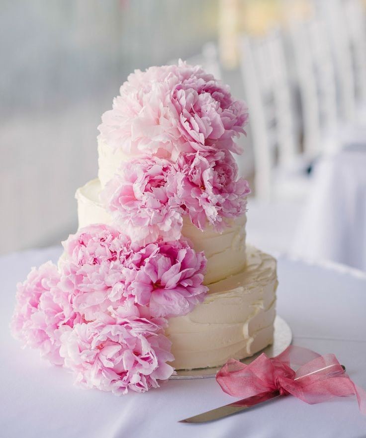 Трехъярусный белый торт украшенный сиренью сделанною с мастики.