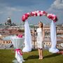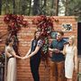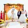 Свадебная квадратная стойка, украшенная аксессуарами в стиле Бохо в коричневых тонах