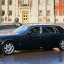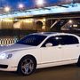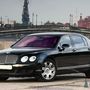 Черный "Bentley Flying Spur" на фоне города и моста через реку.
