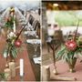 Квадратная свадебная арка. украшенная елью и розами, на фоне леса