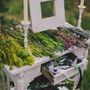 Букет невесты из серо-зеленой цинерарии, коричнево-серых сухоцветов и зеленых листьев в морском стиле, декорированный белыми