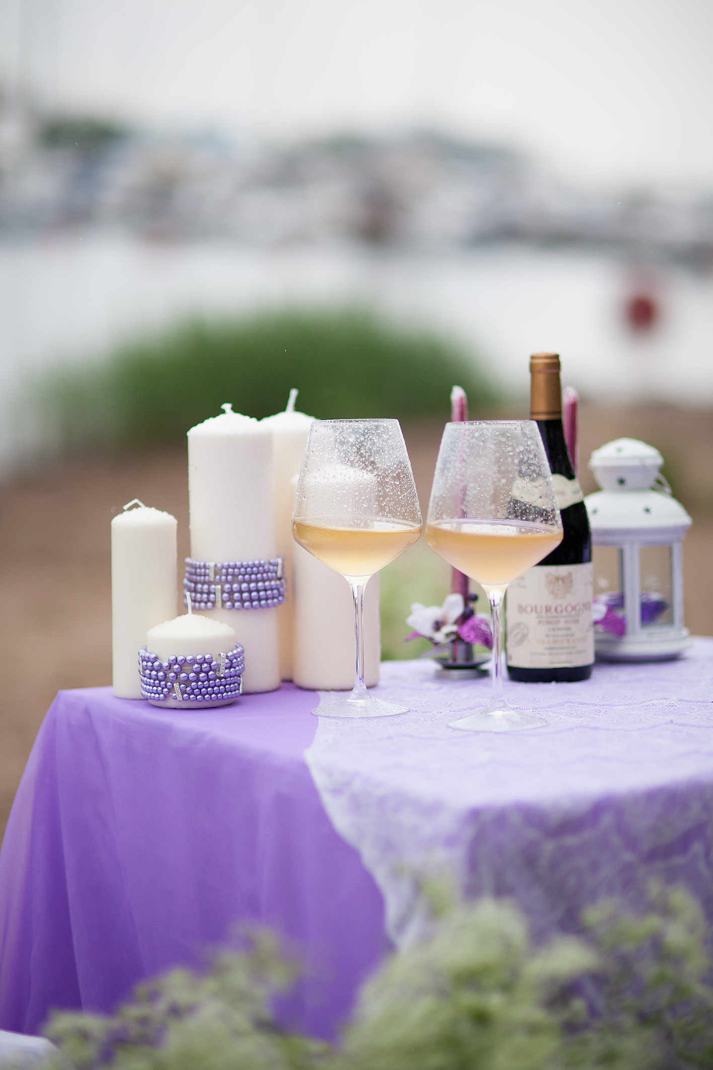 Оформление зала Сиреневый Скатерть Белый Кружевная ткань Свеча Бордовый