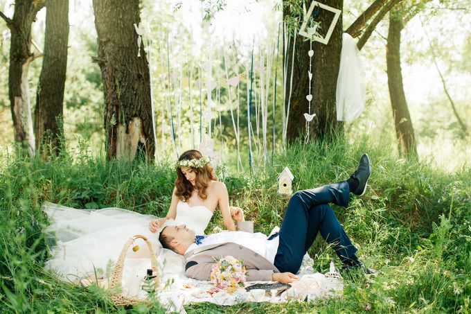 стильная свадьба, свадьба летом, летняя свадьба, венок, пикник в лесу, свадьба в лесу, свадебная фотосессия в лесу