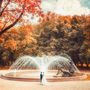 Осень. Фонтан. Город. Пара. Влюбленные. Молодожены.