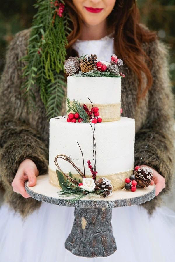 Торт Белый Двухъярусный Мастика Коричневый Лента Красный Декоративные плоды