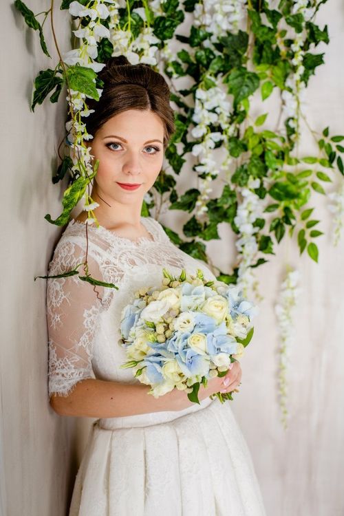 Букет Круглый букет Белый Роза Голубой Гортензия