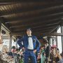 Образ жениха Двойка Шляпа Синий Белый Рубашка