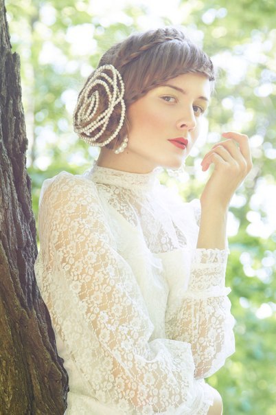 Винтажный свадебный образ, свадебная прическа, красная помада