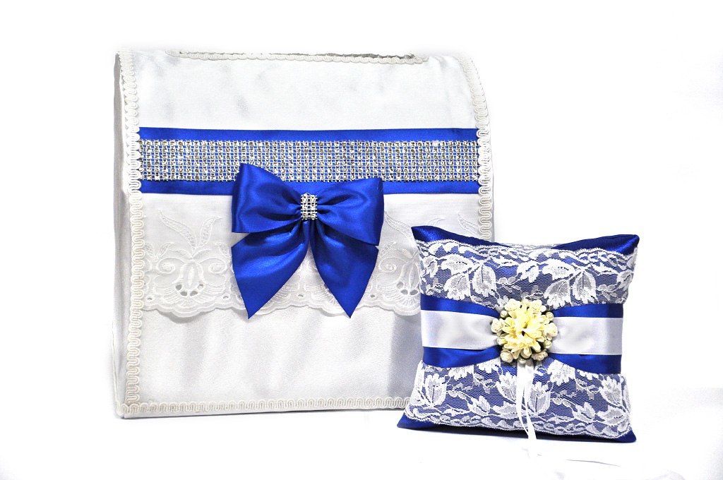 Подушечки для колец Белый Ленточки Кружева Подушечка Синий