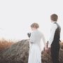 Букет невесты из оранжевых и розовых роз, серой брунии и