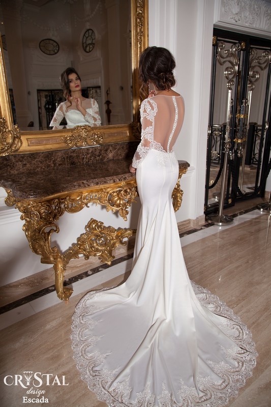 Платье Белый Кружева Годе Закрытый верх Кружевной верх Со шлейфом