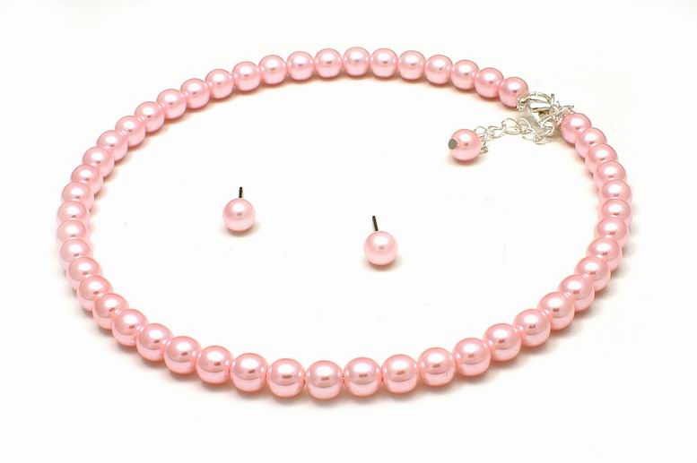 Ожерелье и серьги-гвоздики из розового жемчуга на шею в классическом стиле