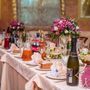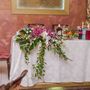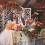 Оформление зала Белый Декоративная табличка Задник Оранжевый Роза Бордовый Каллы Президиум для молодоженов Скатерть Бежевый Драпировка тканью Розовый