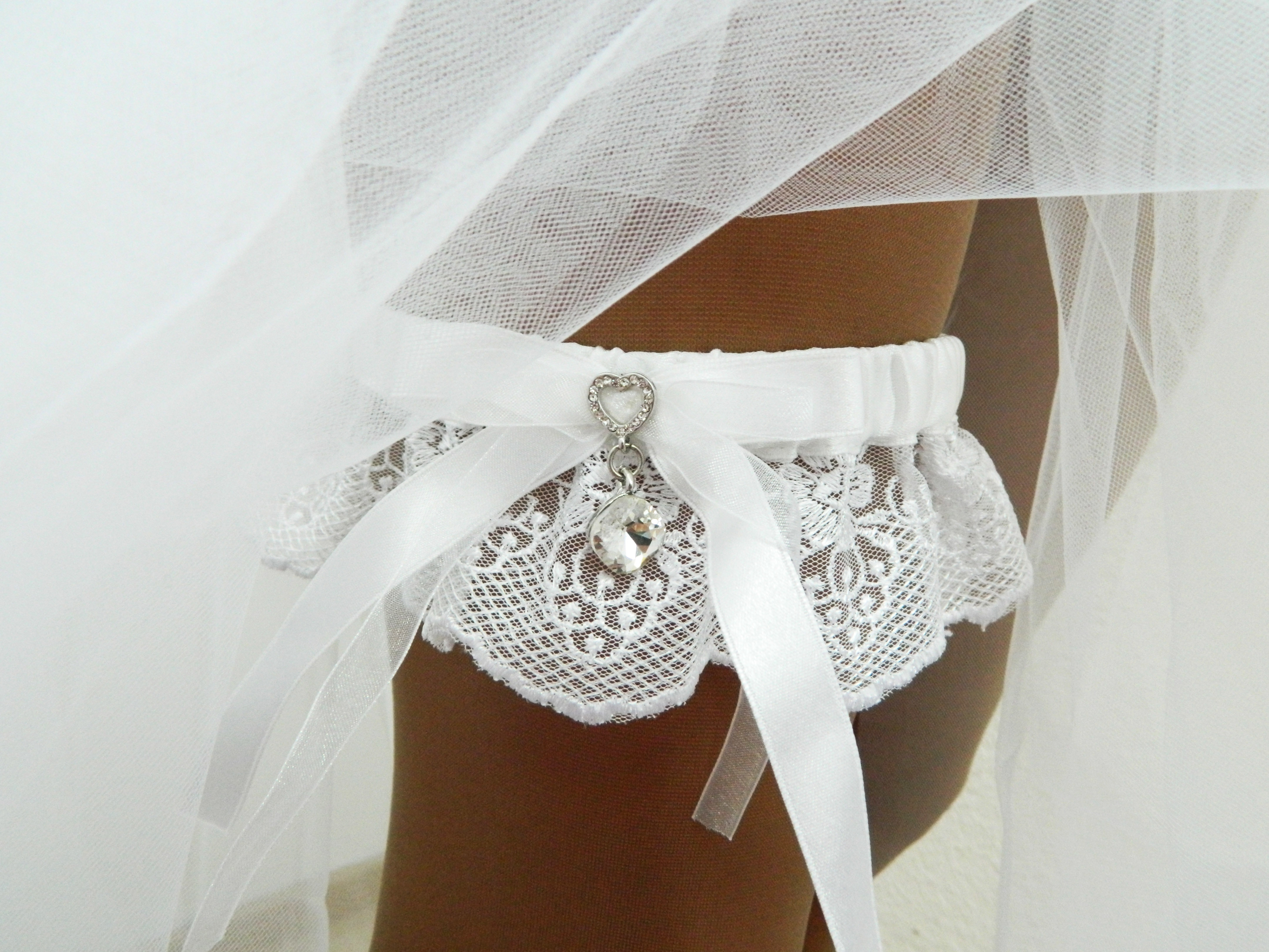 Свадебная подвязка "Аина", изящное белое кружево с красивой каплевидной подвеской-кристаллом. - фото 7716982 Lola&Bride - свадебная мастерская