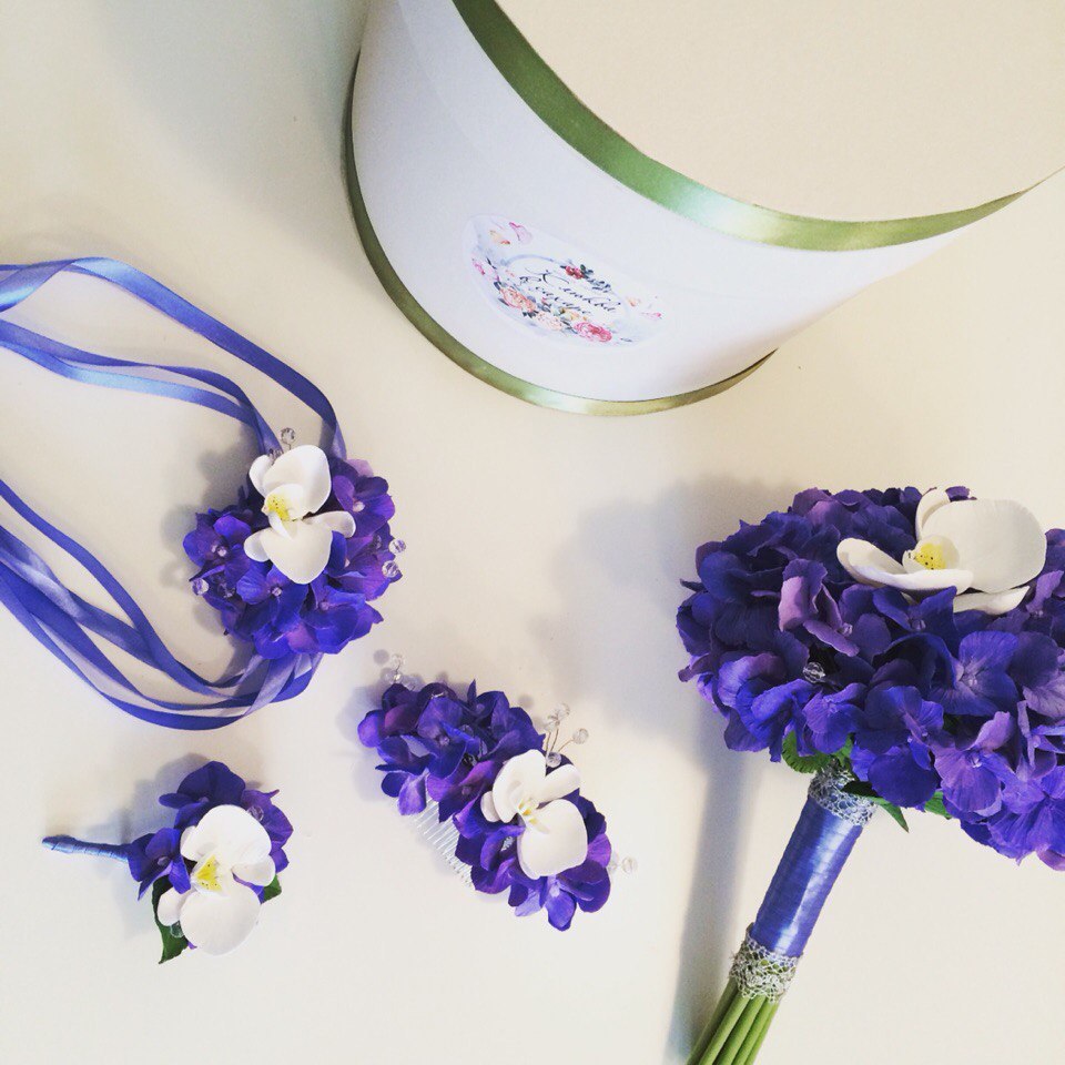 Бутоньерки Белый Жёлтый Орхидеи Голубой Гортензия