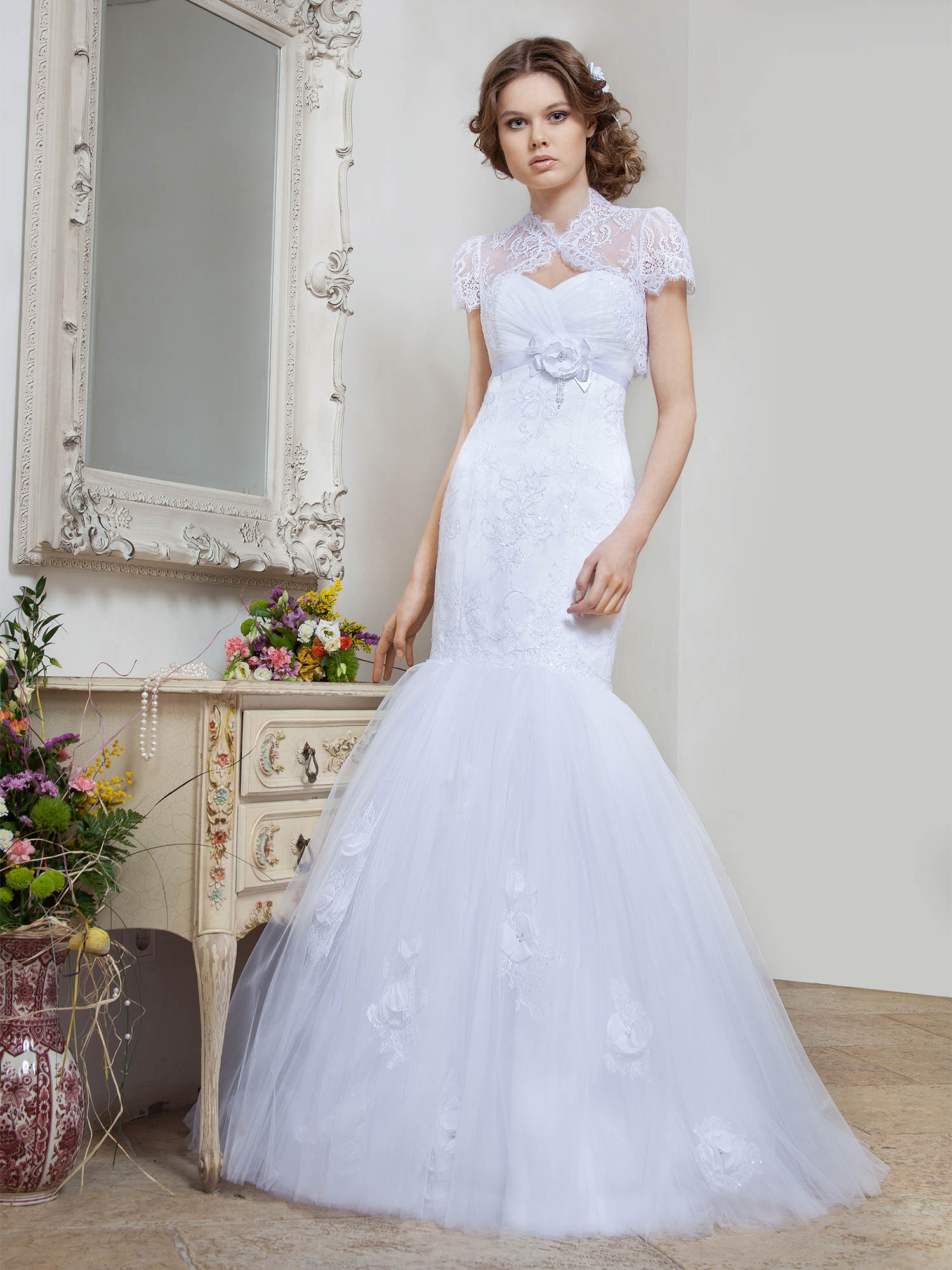 Платье Длинные Годе Открытый верх Декоративный цветок Кружева