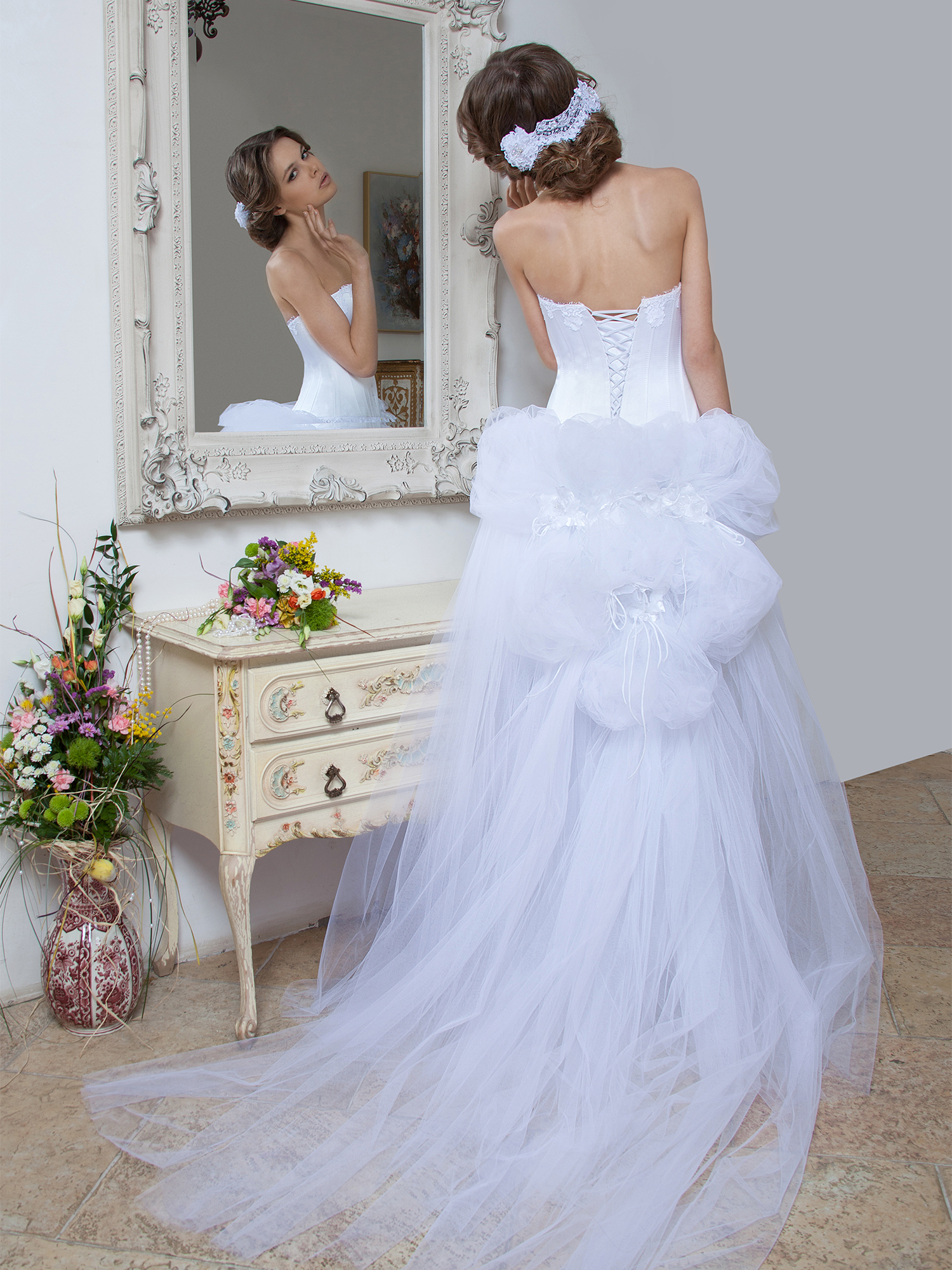 Платье Длинные А-силуэт Со шлейфом Корсет Открытый верх Кружева Декоративная драпировка