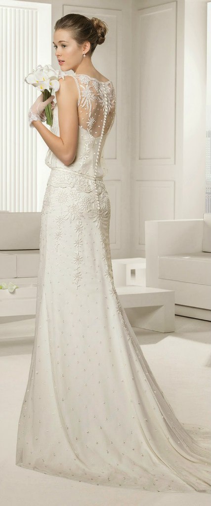 Платье Белый Длинные Кружева Прямое платье Закрытый верх Со шлейфом