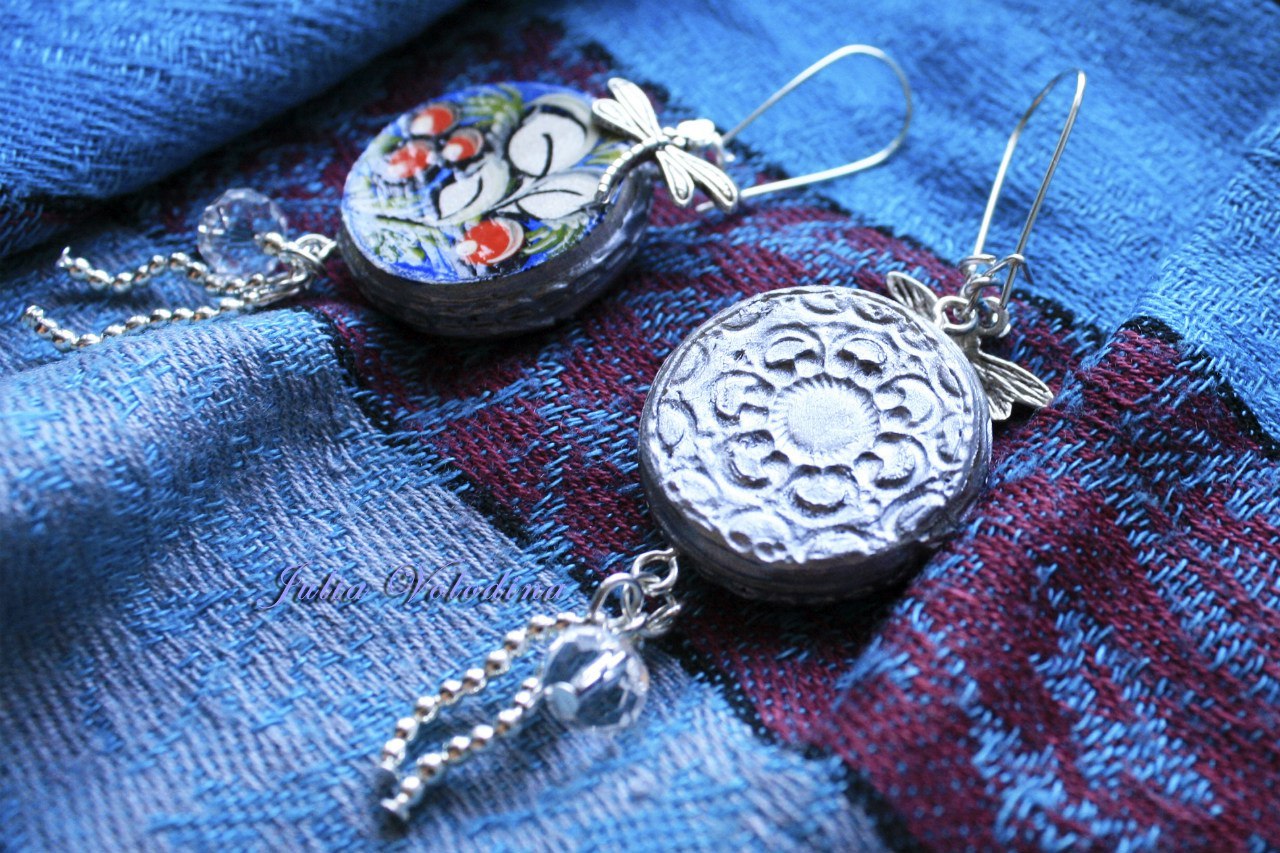 Деревянные (дубовые) серьги с ручной росписью под хохлому в русском стиле. Брусника под снегом. Готовая работа в единственном экземпляре.  950 руб. - фото 8668122 Мастерская Юлии Володиной