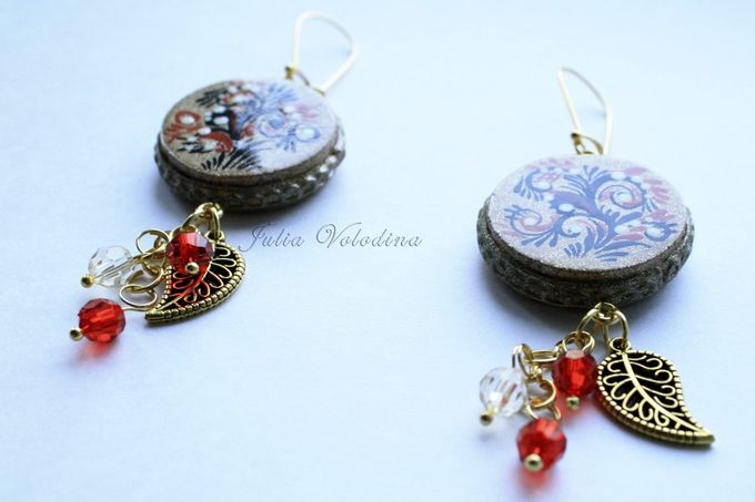 Деревянные (дубовые) серьги с ручной росписью под хохлому в русском стиле "Травка" На заказ. 950 руб.