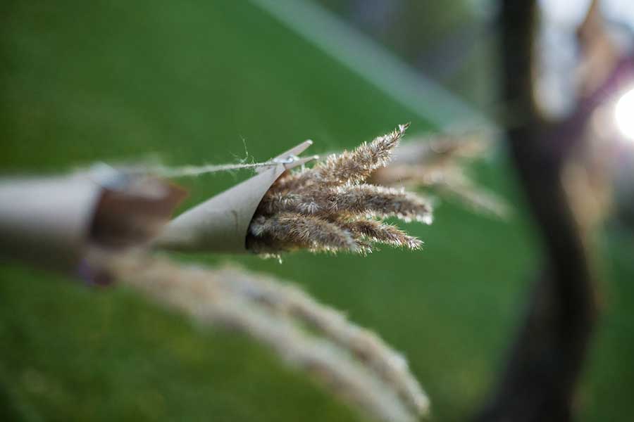 Оформление для фотосессии свадьбы в стиле рустик с использованием сухоцветов в конвертах из крафт-бумаги