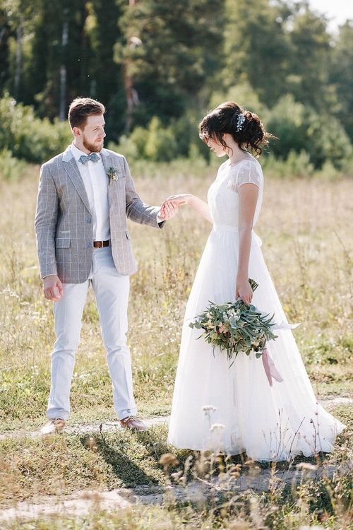 Образ жениха Белый Рубашка Брюки Серый Бабочка Пиджак Принты