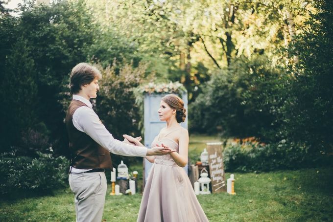 Образ жениха Белый Рубашка Коричневый Жилетка Серый Брюки