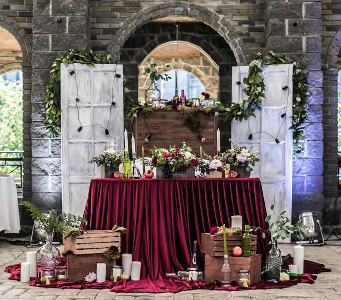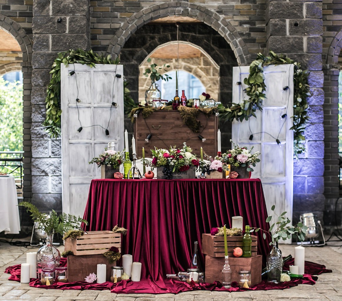 Оформление зала Бордовый Скатерть Стеклянная бутылка Серый Задник