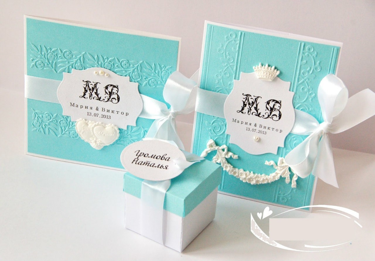Приглашения Декоративные таблички Голубой Hand Made Hand Made Открытка Белый Ленточки