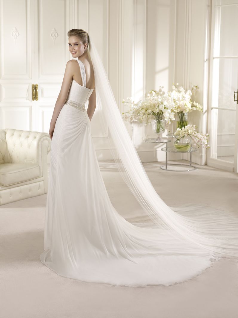 Платье Белый Длинные Стразы Прямое платье Со шлейфом Пояс на талии Корсет С бретельками Декоративная драпировка