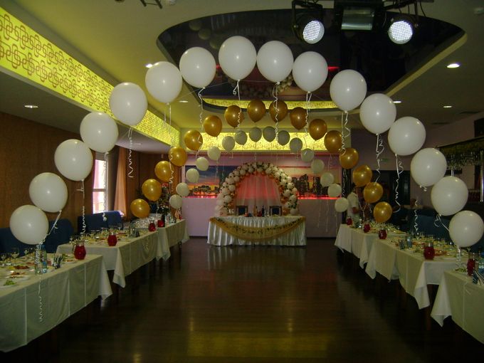Свадебное оформление зала: арки из гелиевых шаров, президиум в греческом стиле - фото 984283 "Фантазия" - творческая студия Марины Фоминой