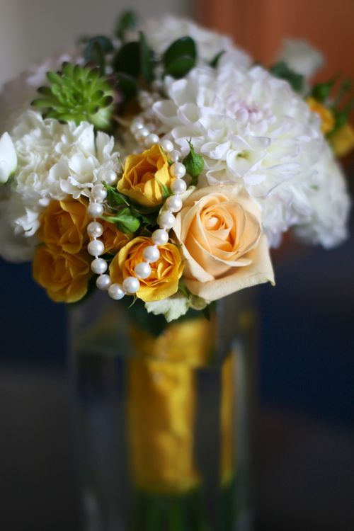 Букет невесты бусины желтый из гвоздик — 1 фото