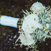Букет невесты ленточки зеленый ранункулюс — 9 фото