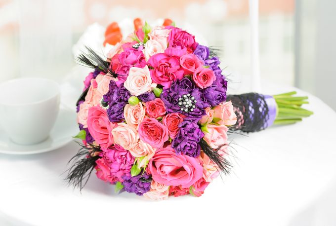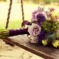 Букет невесты перья фиолетовый роза — 1 фото