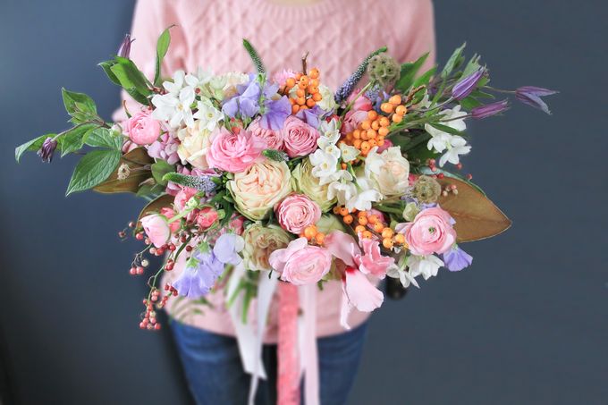Букет невесты стиль "шебби шик" сиреневый — 20 фото