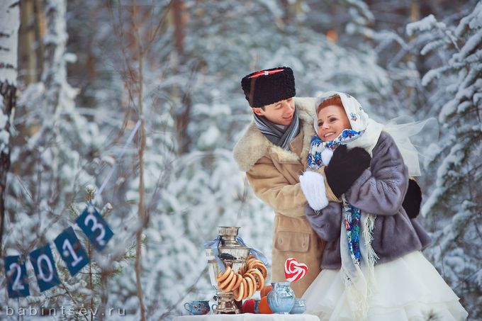 Этнические, народные свадьбы (русская, украинская...) голубой зимой — 6 фото