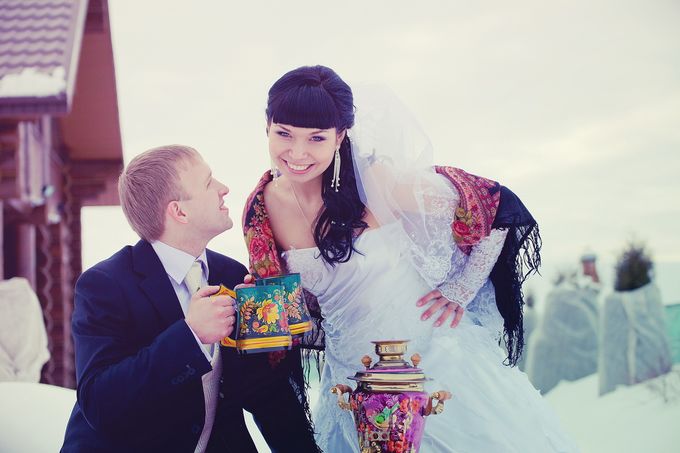 Этнические, народные свадьбы (русская, украинская...) розовый зимой — 1 фото