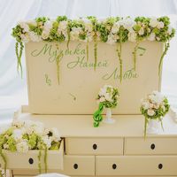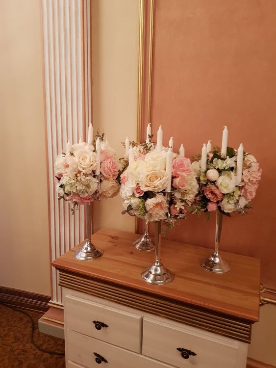 Оформление свадьбы цветами предметы мебели комод бежевый — 35 фото