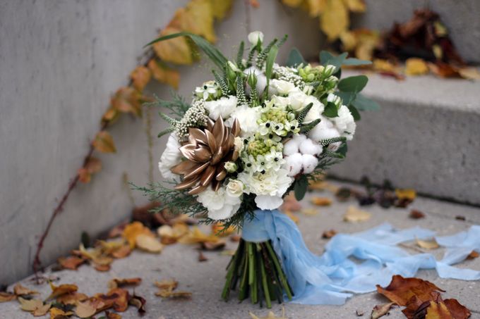 Букет невесты круглый оринитогалум — 51 фото