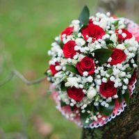 Букет невесты круглый красный гипсофила — 19 фото