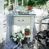 Оформление свадьбы цветами предметы мебели лавка голубой — 12 фото