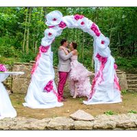 Оформление выездной церемонии регистрации арки, декорированные бумажными цветами красный — 14 фото