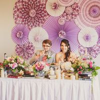 Оформление выездной церемонии регистрации бумажные веера сиреневый — 8 фото