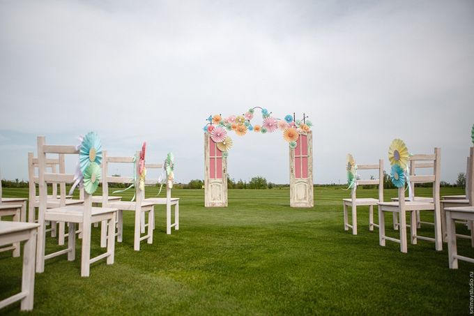 Оформление выездной церемонии регистрации бумажные веера зеленый — 12 фото