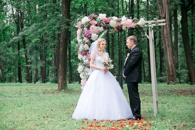 Оформление выездной церемонии регистрации п-образная арка белый гортензия — 18 фото
