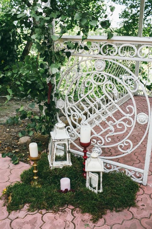 Оформление выездной церемонии регистрации подсвечник красный — 11 фото