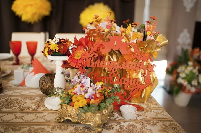 Украшение зала на свадьбу декоративные таблички оранжевый — 24 фото